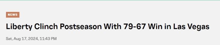 冲击冠军23胜4负创队史纪录!自由人提前13场锁定季后赛席位 发布时间: 2024年09月11日 10:09 来源:网络 08月18日讯 WNBA常规赛,纽约自由人以79-67击败拉斯维加斯王牌,连续第二场战胜卫冕冠军。最近10场比赛,自由人拿下9胜1负的傲人战绩。在获得这场比赛胜利之后,自由人官方也发文表示球队已经锁定了本赛季季后赛资格(常规赛40场,联盟前8获季后赛资格),成为首个获得季后赛席位的球队。自由人本赛季至今的战绩是23胜4负,这也是她们队史开季前27场比赛的最佳战绩。 标签: CBA 中国篮球 篮球 比赛集锦 篮球 NBA WNBA