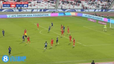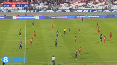第85分钟,日本一脚直塞打穿大半场,但最后的处理浪费了机会: